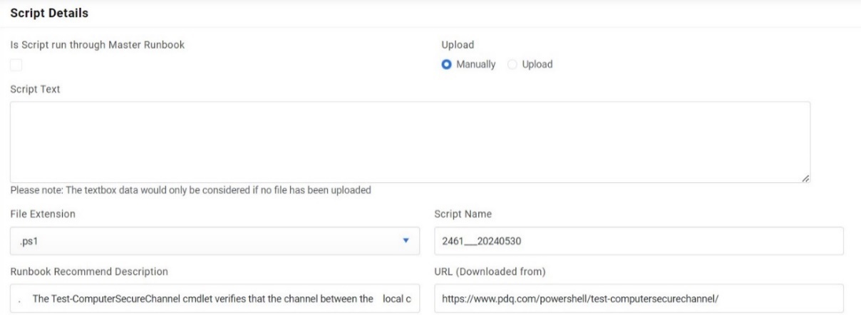for which No Runbook Available, Script Downloaded but not Approved, Script Available,