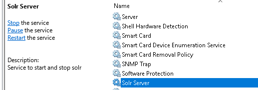 “Start” the service on the left panel to stop the service.Note:Solr Server / Solr Server