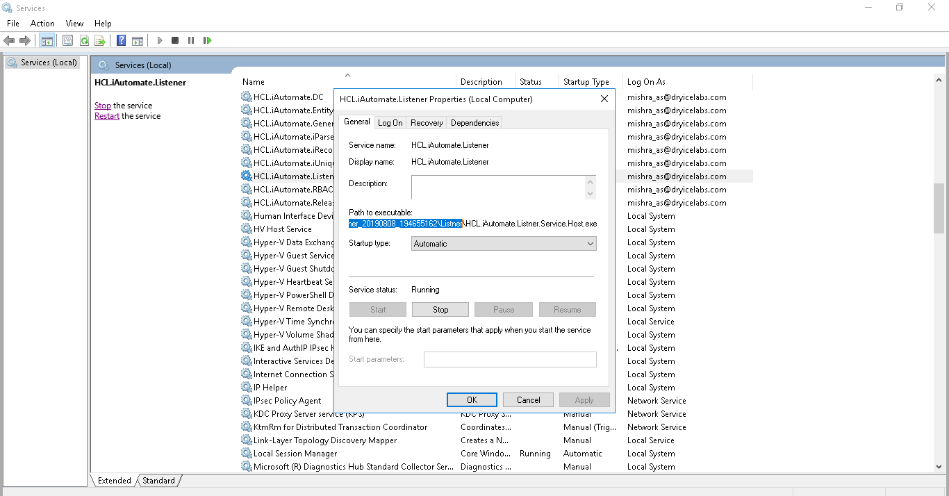 - Search for HCL.iAutomate.Listener service and right-click on it.