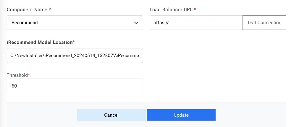 in the ‘iRecommend Model Location’ field.
