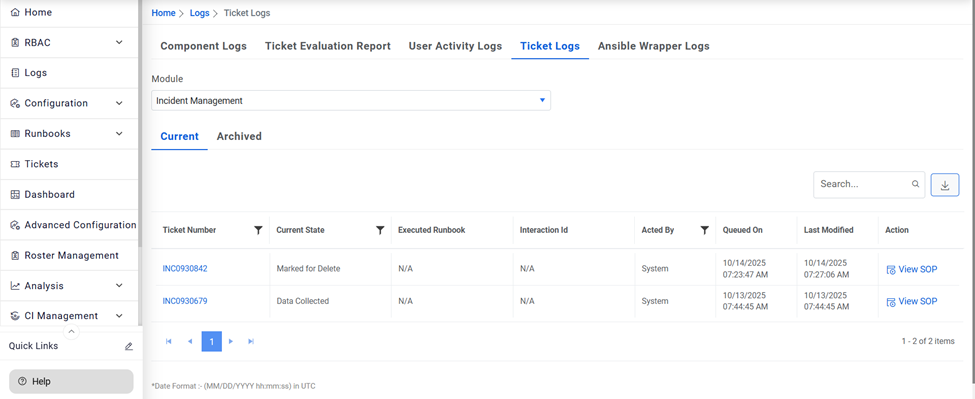 Ticket Logs : Provides users with a comprehensive log of all the activities for a