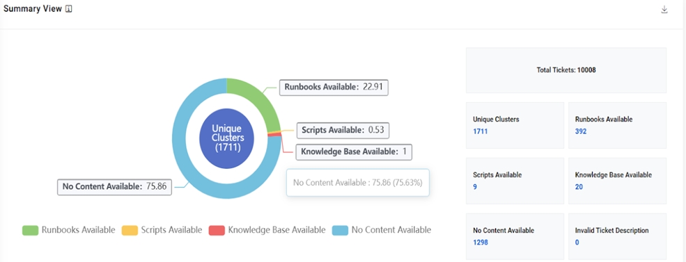 Additionally, it also provides a self-service driven mechanism to help users in identifying the automation potential, by ingesting and analyzing the ticket data from the ITSM system.