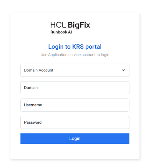 If you are logging into KRS web application for the first time, to perform configuration, the user must have login credentials for application service account.