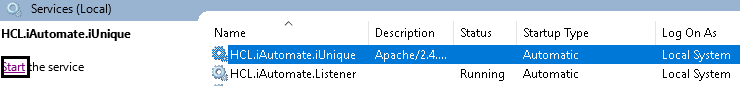 | Probable Root Cause | HCL.iAutomate.iUnique service is not running |