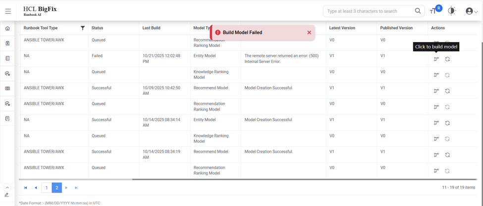 | Issue description | Failed to build model due to incorrect URL of the server running IRecommend service. |