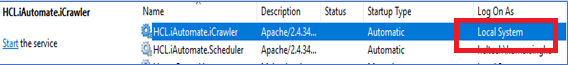 HCL.iAutomate.iCrawler should be changed to ‘Service Account’.