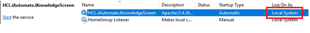 HCL.iAutomate.iKnowledgeScreen service is not starting