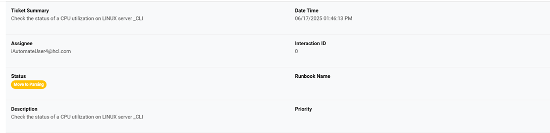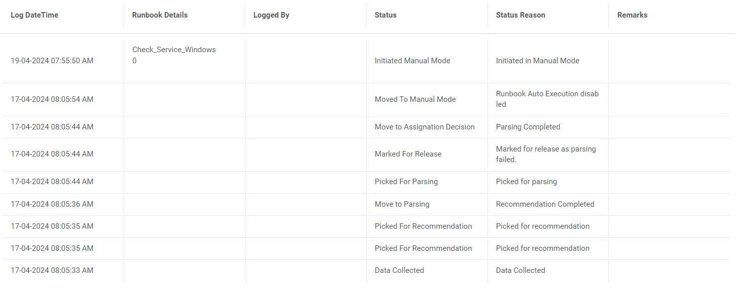 | Runbook Name | Name of the runbook executed for the logged ticket. |