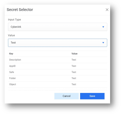 such as CyberArk or Internal Secret Manager then select Input Type as CyberArk or Internal