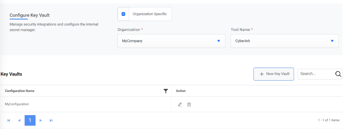 - For tool name CyberArk, below popup is opened on click on ‘New Key Vault’