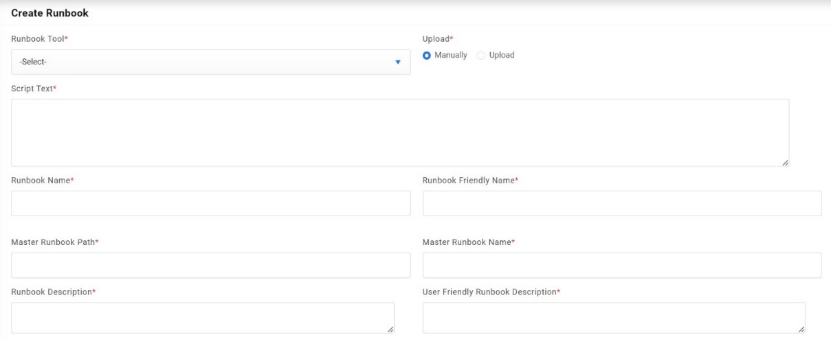 - Users can upload multiple scripts simultaneously using the Upload option or type the script for each runbook in the Script Text field.