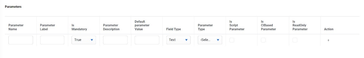 - IsCiBased Parameter- Check the checkbox if the parameter is a CI based parameter. It is mandatory to have at least one parameter as CI based parameter.
