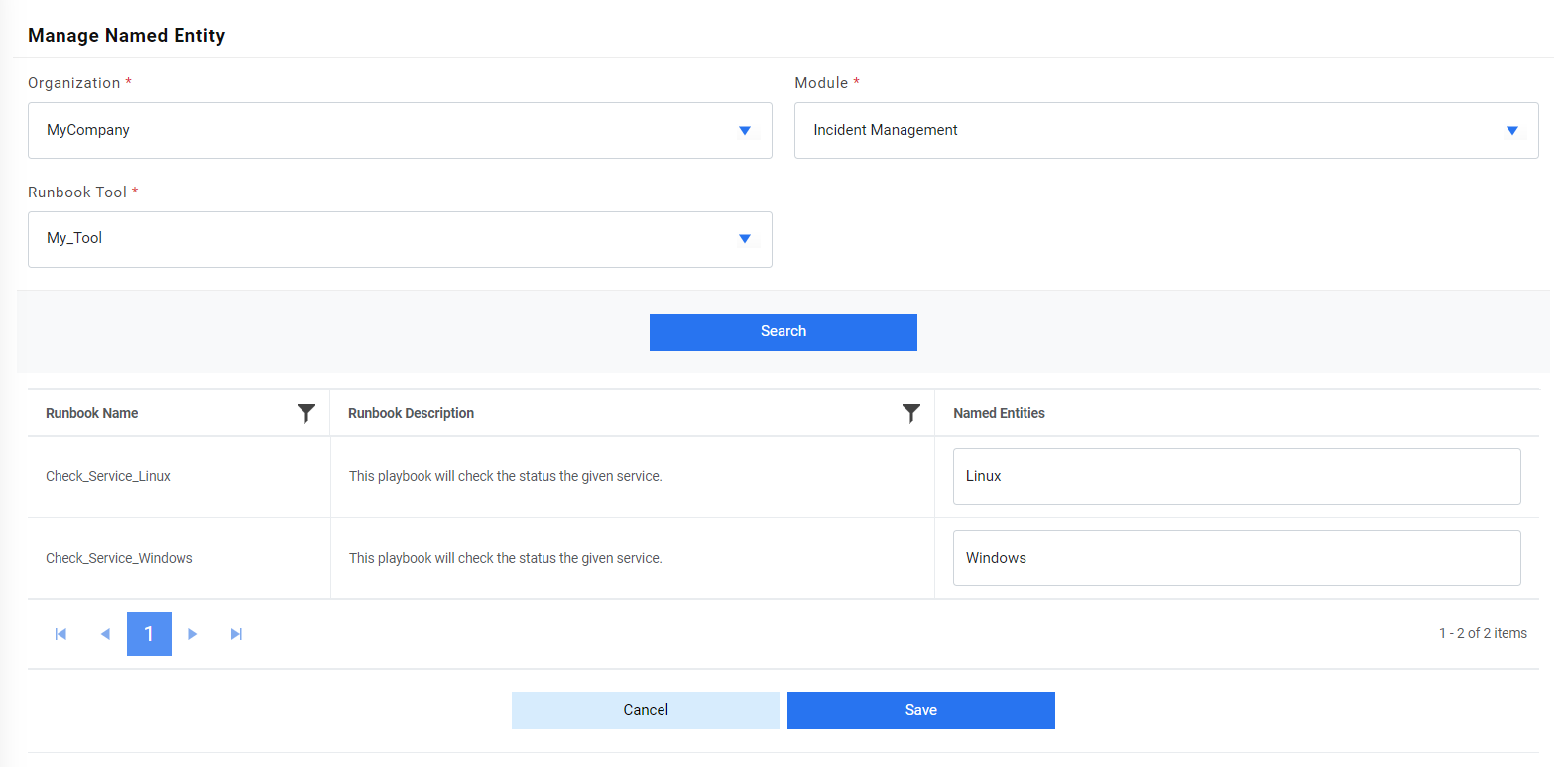 Note:It is not mandatory to mention the named entities for every runbook. It should be used only if required. Multiple values can be provided as comma separated values.