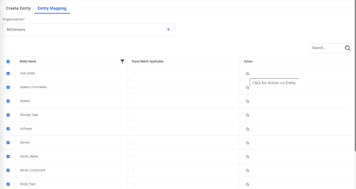 - To map an entity, select the check box corresponding to the entity. A confirmation