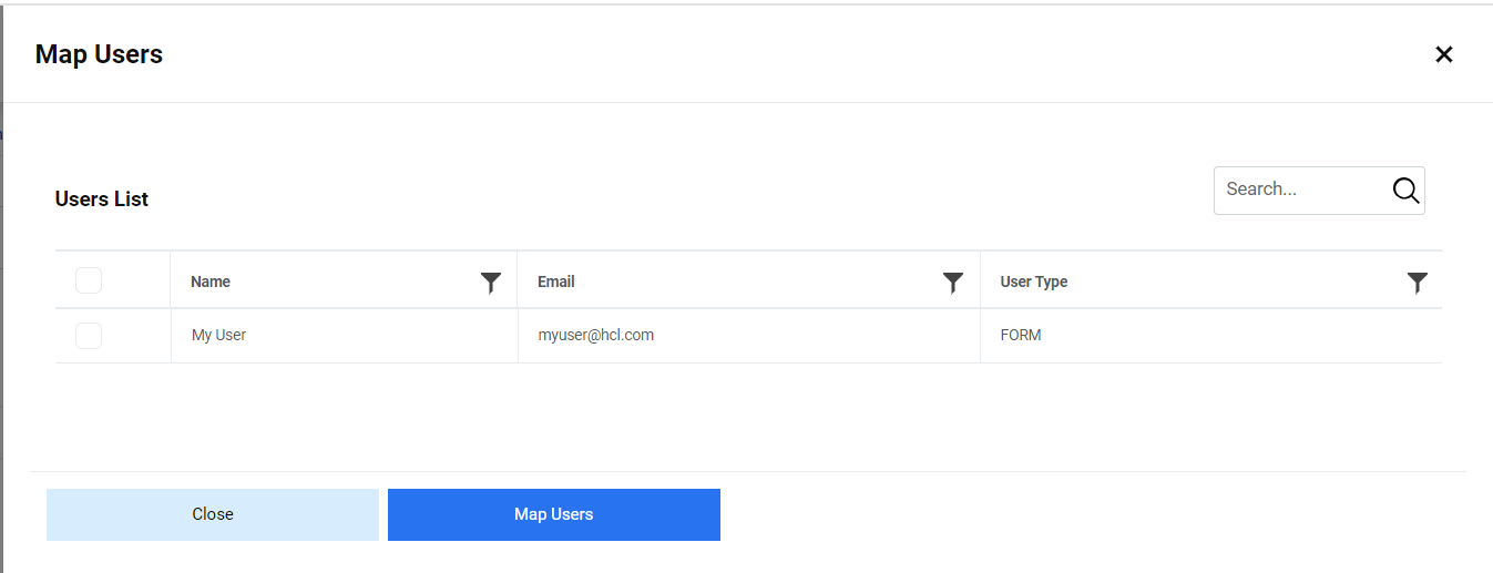 - Check the user that needs to be mapped and click on Map Users button. It lists