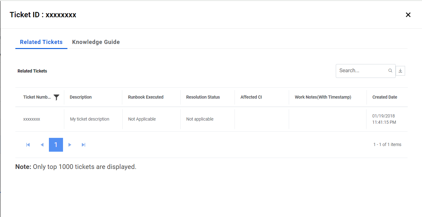- Click on Related Tickets icon. Below popup opens.