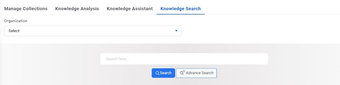 - On the Knowledge menu, click on Knowledge Search. Below screen appears: