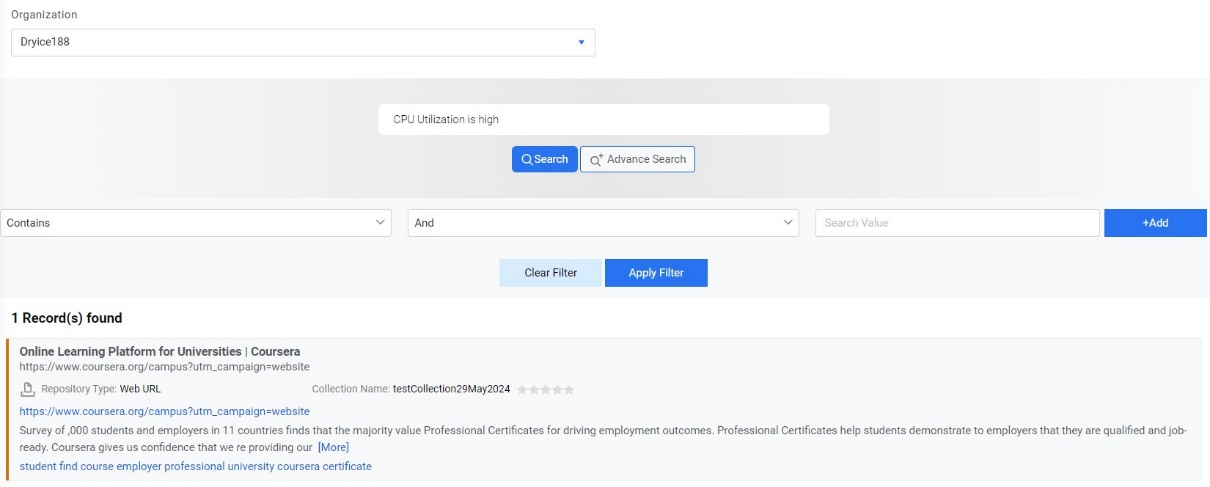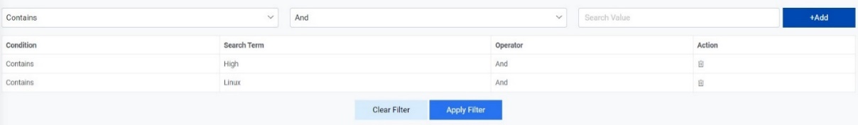 - Add all the conditions and click Search. Now the data will be filtered as per the