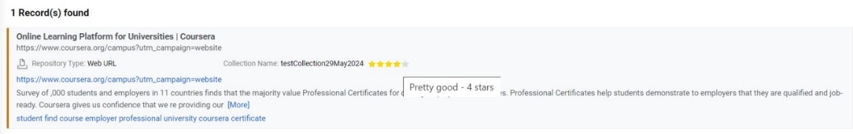 - Users can also give rating to any of the fetched links whatever suits him the right.