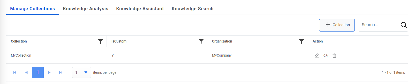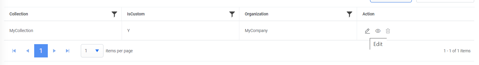 - Click on Save to create the collection. The collection will now be listed on the grid.