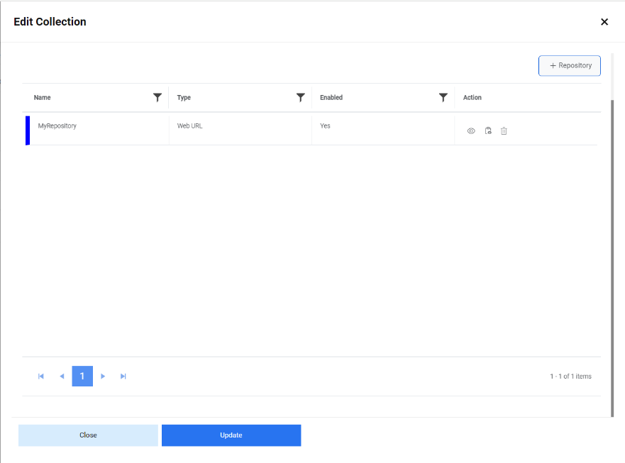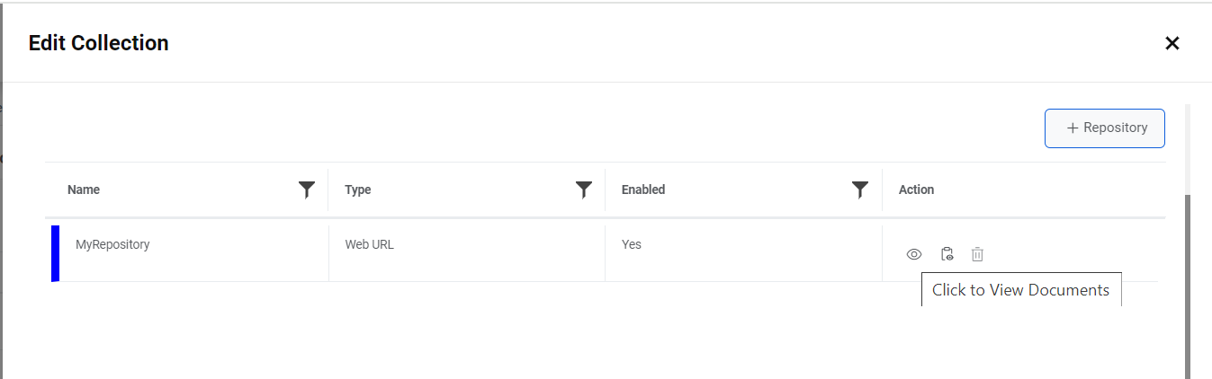 Users can define the repository configuration based on the type of repositories, such as Web URL , ServiceNow, File Folder, Satori that will be deployed in the environment.