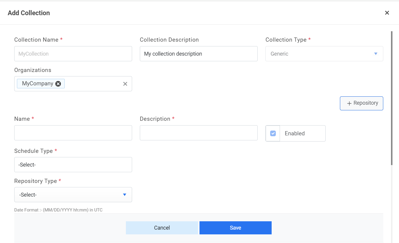- For generic type, User can select the organizations to which collection needs to be mapped.