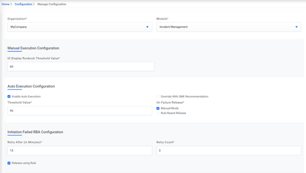 - Manual Execution- The user selects the most appropriate runbook from the list of runbooks suggested by iAutomate.