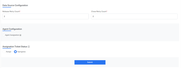 - In the Data Source Configuration field, enter the Release Retry Count. This indicates the maximum number of retry attempts for releasing the ticket.