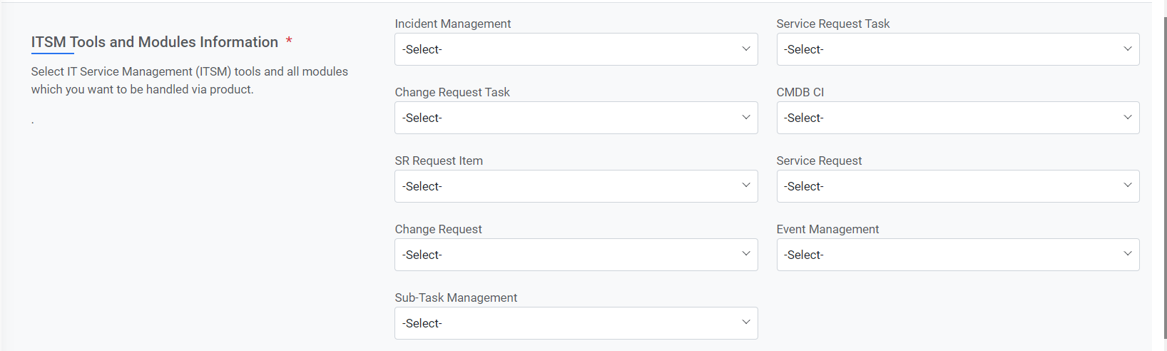 - Select the ITSM Tool Type from the Module Name field.
