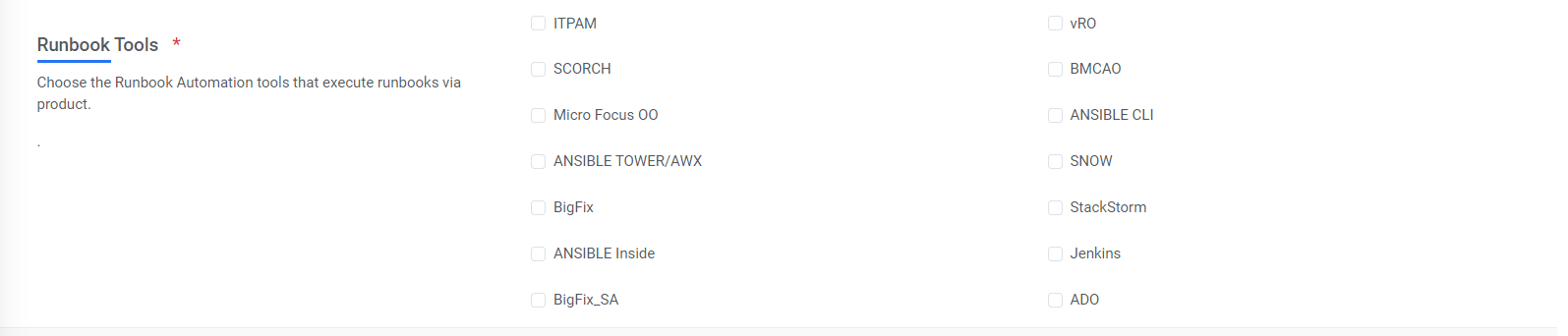 - Select the required Runbook Tool from the list of tools.