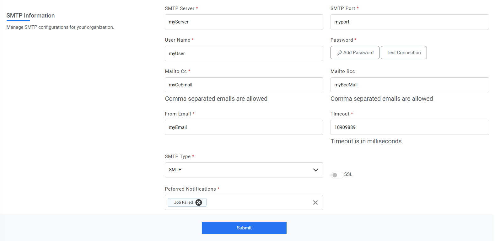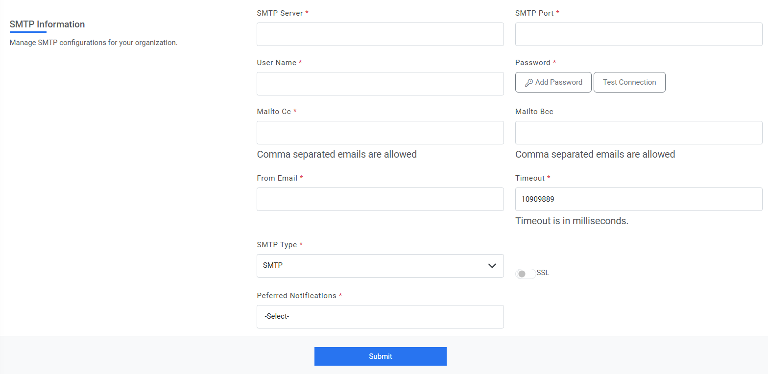 If the organization chooses to use mail-based notifications, SMTP specific configurations will be required.