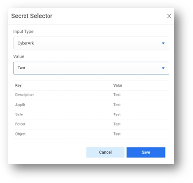 such as CyberArk or Internal Secret manager then select Input Type as CyberArk or Internal