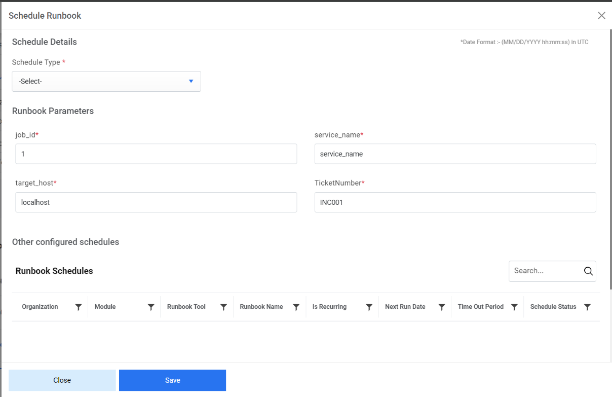 - This creates a new schedule and lists it on the Runbook Schedule page.