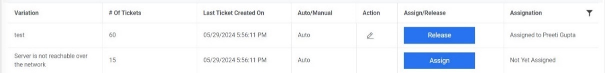 Note:If user clicks Release, then the variation status will again change to Assign and will become available for assignment to another user. - In the Action column, click