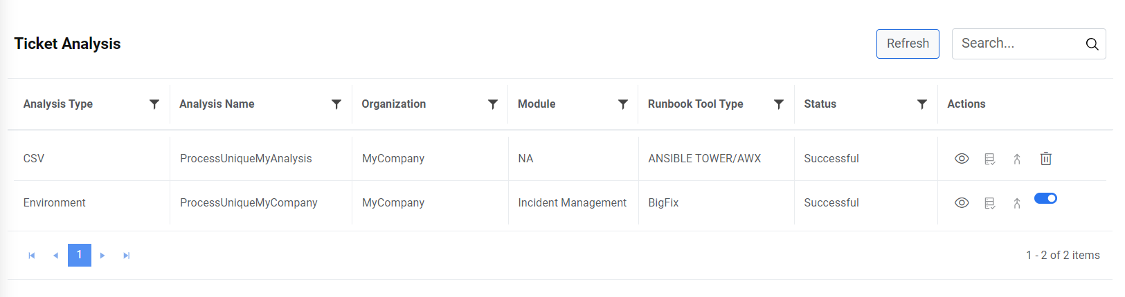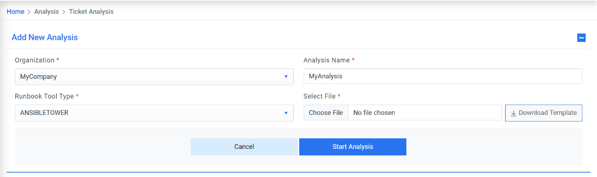 - To CSV Ticket Analysis: In this case, user can use existing organization data for ticket analysis. You can analyze that data and create a runbook of frequently occurring tickets. It imports the same runbook into the database for further use.