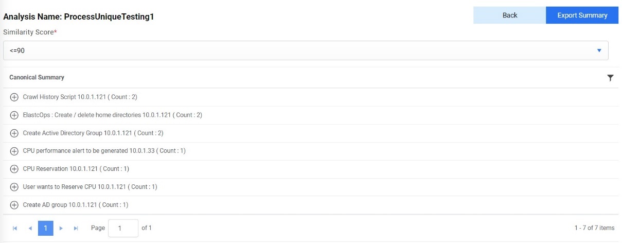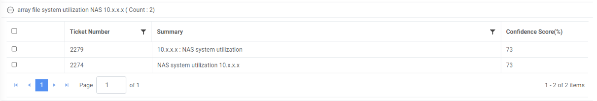 - On the View Ticket page, analysis appear in a tabular view under the Canonical Summary column, based on the selection of similarity score.