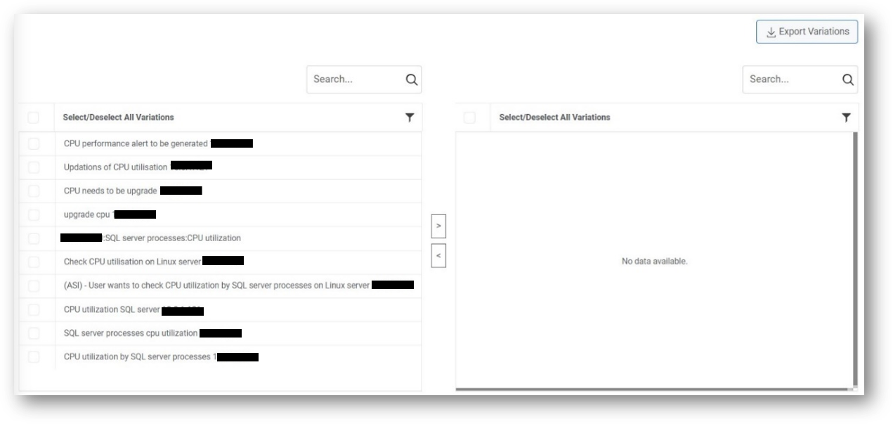 versa to remove selected variations.Note:User can select a single variation or multiple variations to merge. - To merge the selected variations, click Merge, and then click Save.
