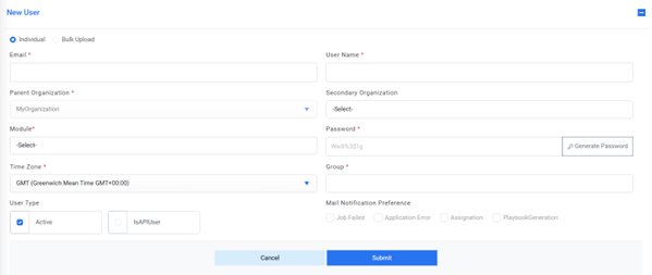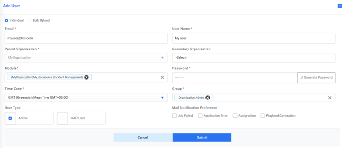 A Super Administrator or Organization Admin can add a new user in an organization by performing the following steps: