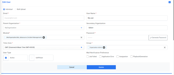 configured then the corresponding emails will be sent to the user.Note:The bulk upload option is only visible to organization admin.