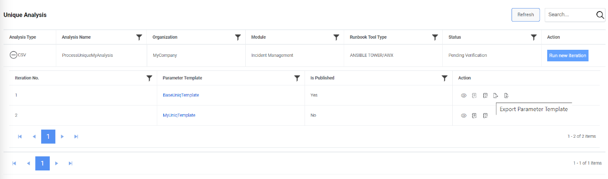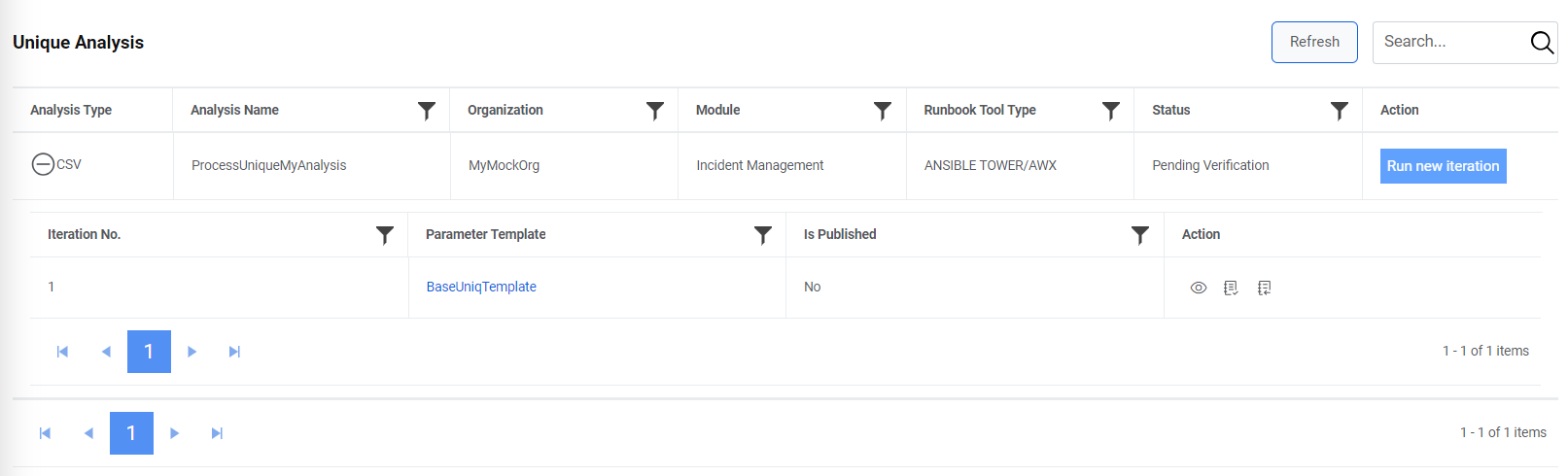 unique analysis, and view, edit, or publish the existing unique analysis.Note:User can only perform one unique analysis for a single organization at one time. However, you can run multiple analyses for different organizations simultaneously.