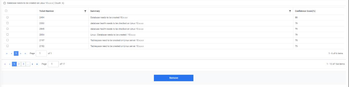 - To delete tickets from the selected analysis, select tickets under the canonical summary and click Remove.