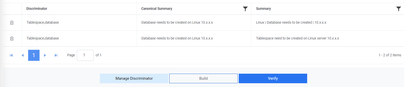 - The Manage Discriminator page appears and allows user to delete the discriminator