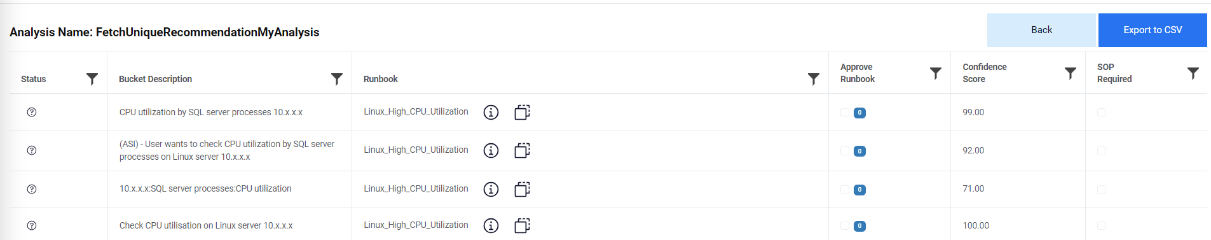 next to the analysis you want to view.Figure 42. View Recommendation Analysis