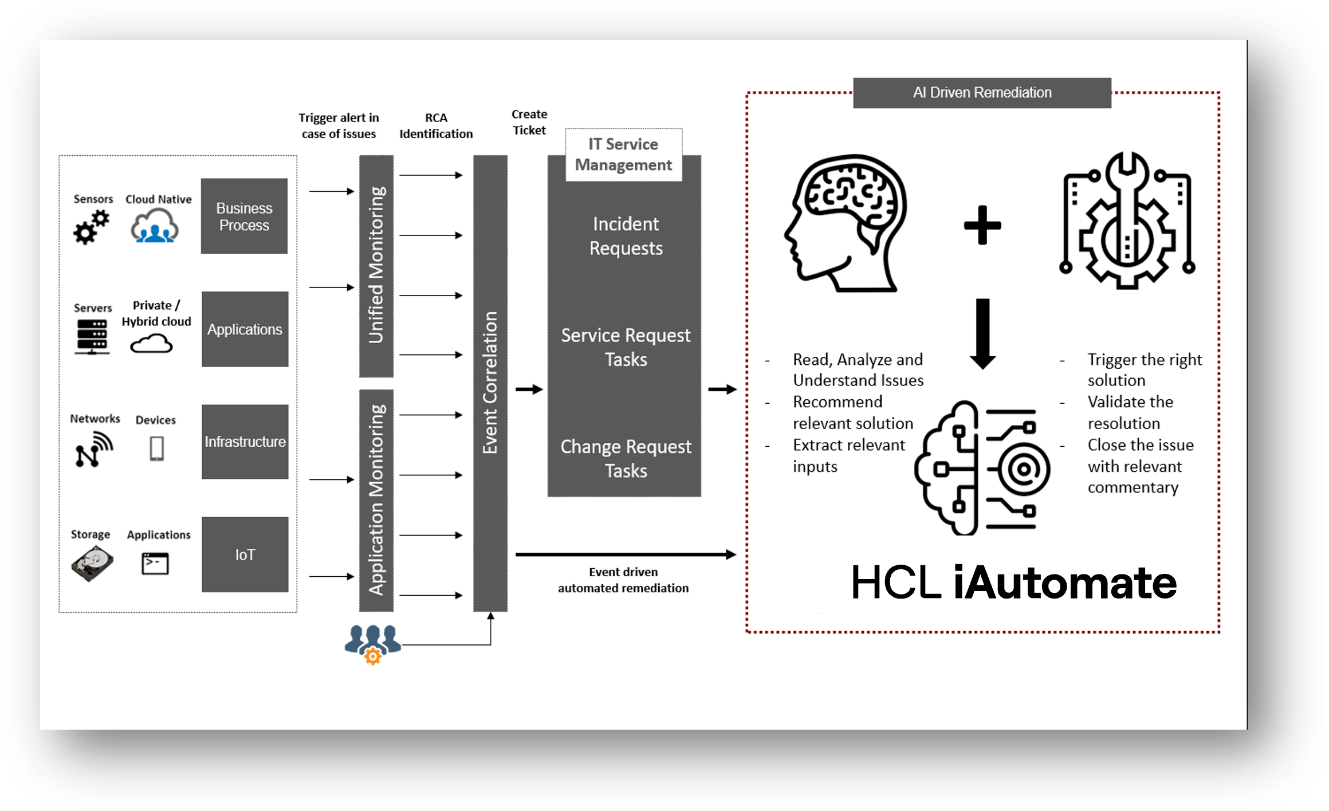 iAutomate is an Intelligent Runbook Automation product which is equipped with Artificial Intelligence, Machine Learning and Natural Language Processing capabilities for simplifying and automating the IT Operations issues resolution lifecycle including incidents, service request tasks, change request tasks and events. It leverages its NLP capabilities for analyzing and understanding the context of a specific issue, recommends the most relevant solution and even triggers the execution, thereby enabling Zero Touch Automated Remediation. It also provides AI-driven Knowledge Recommendation by suggesting relevant knowledge articles from various repositories, both internal and external, as and when required by human agents.