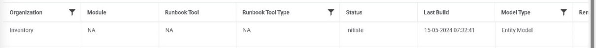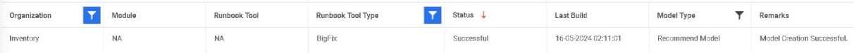 associated organization, module, and the Runbook tool in a tabular view.
