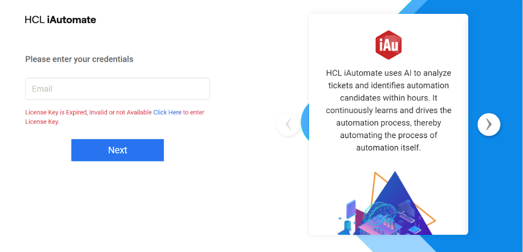- Click on ‘Click Here’ hyperlink to enter the license key.