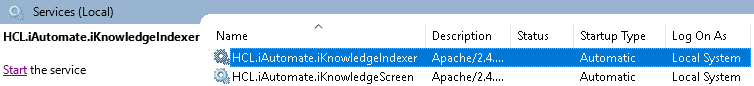 | Probable Root Cause | HCL.iAutomate.iKnowledgeIndexer service is not running |