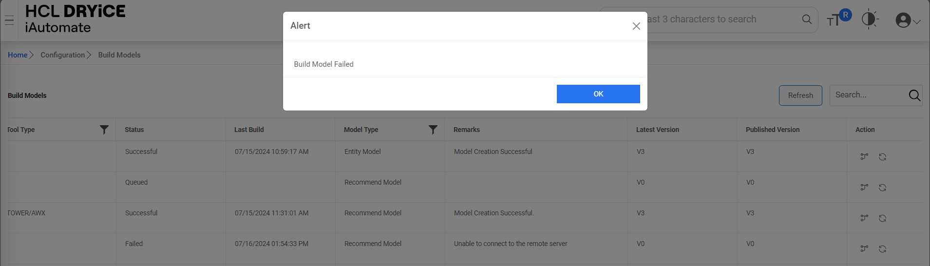 | Issue description | Failed to build model due to incorrect URL of the server running IRecommend service. |