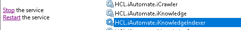 Finally restart the service named HCL.iAutomate.iKnowledgeIndexerFigure 3. HCL.iAutomate.iKnowledgeIndexer (cont.)