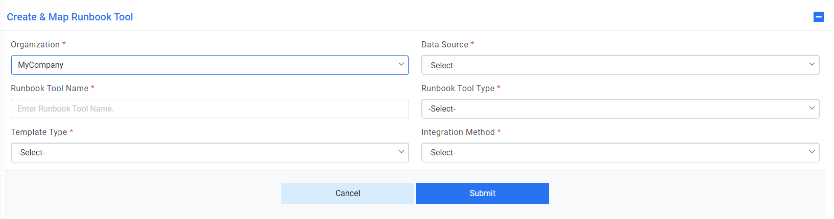 Select the runbook tool mapped with the organization and provide Runbook Tool